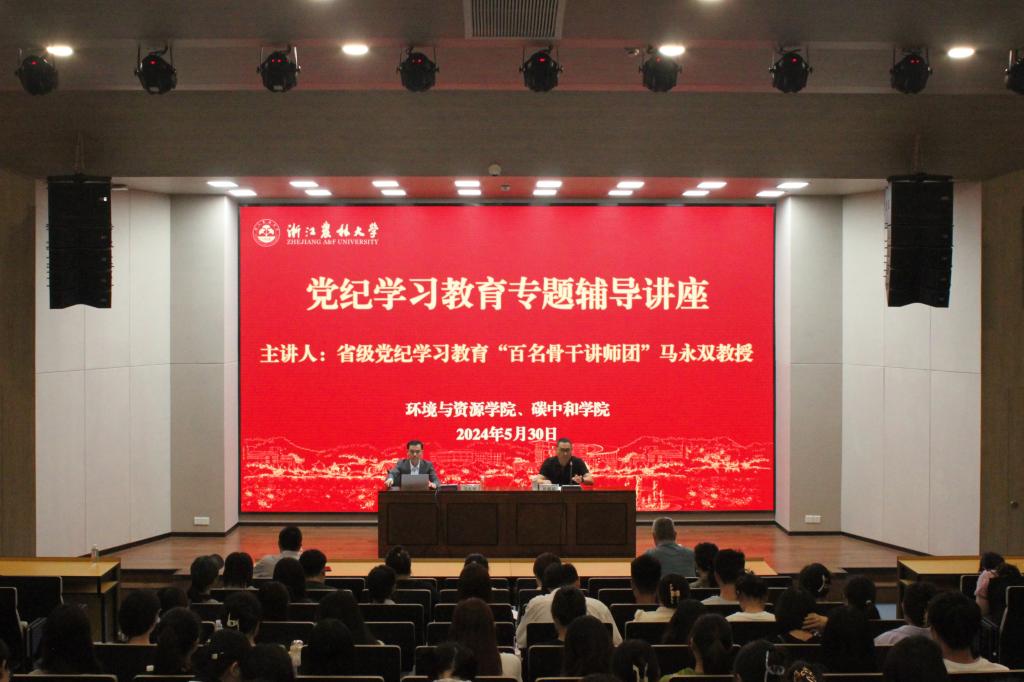 为推动党纪学习教育走深走实,切实做到学纪、知纪、明纪、守纪,5月30日,环资院、碳中和学院邀请文法学院马永双教授为全院200余名师生党员作《中国共产党纪律处分条例》专题辅导讲座。讲座由学院党委书记侯锡铭主持。