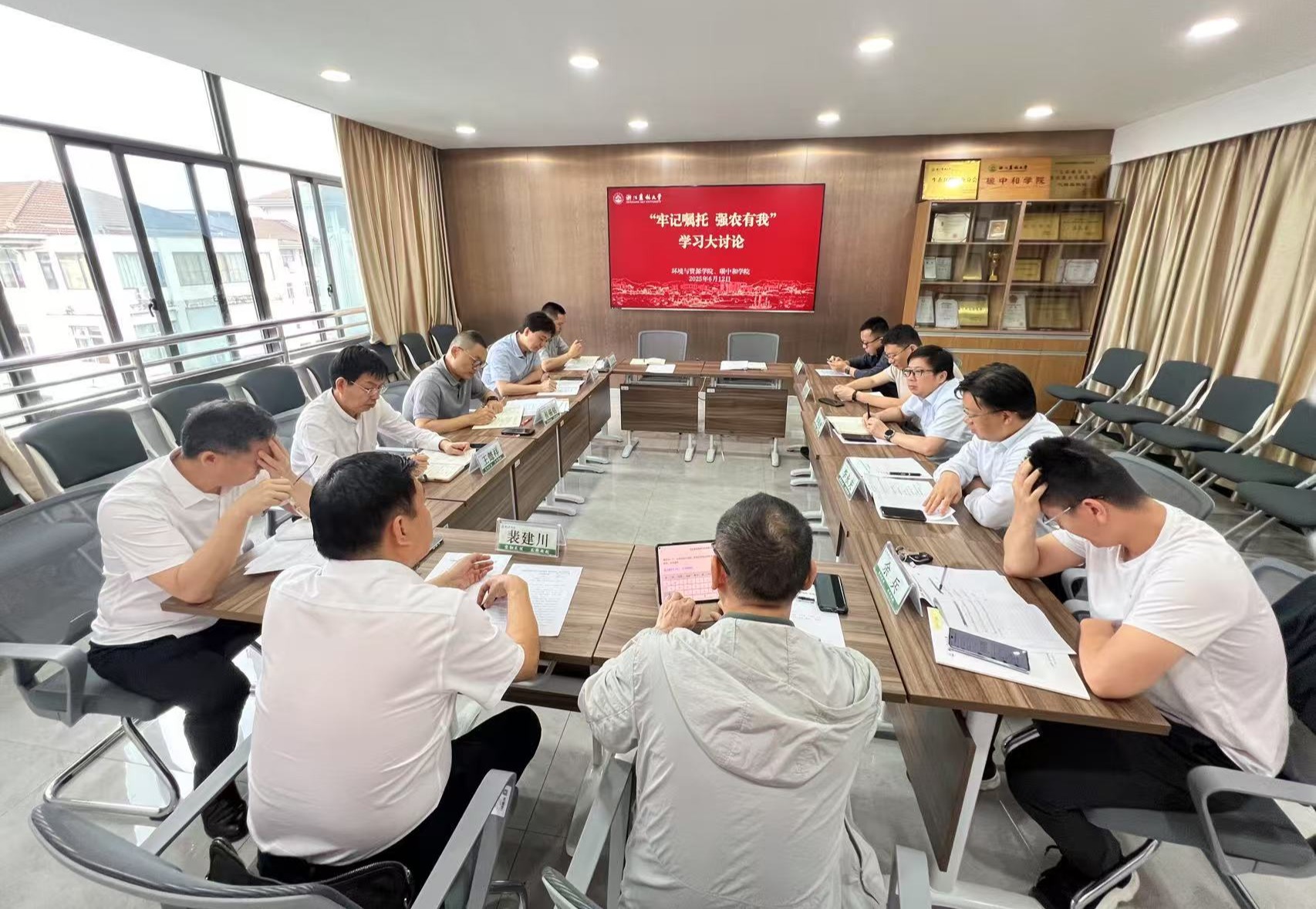 6月12日,环资院、碳中和学院召开“牢记嘱托 强农有我”学习大讨论,学院党政领导班子成员、学科负责人、高层次人才代表、教师代表参加座谈。
