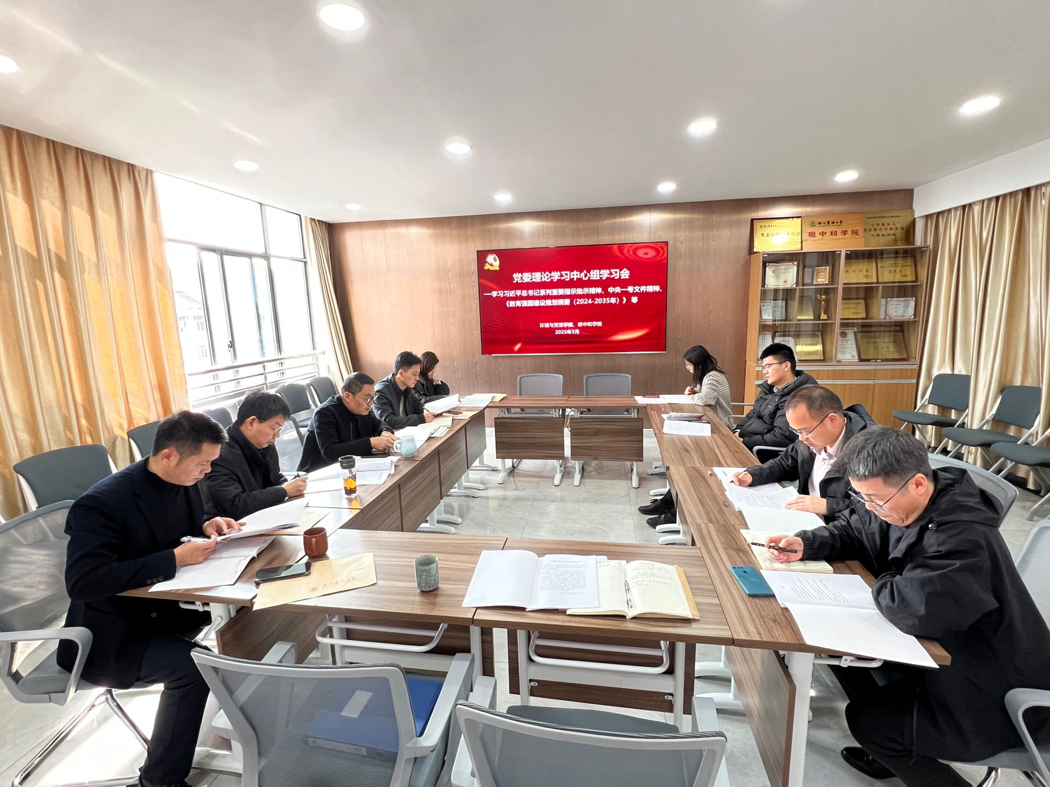 311日,环境与资源学院、碳中和学院召开党委理论学习中心组会议,专题学习习近平总书记重要指示批示精神和重要回信精神,学习贯彻2025年中央一号文件精神,学习传达《教育强国建设规划纲要(20242035年)》、浙江省新春第一会全省高校党的建设工作会议等精神。学院党委书记侯锡铭主持会议。