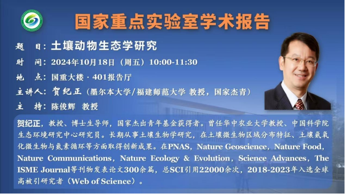 贺纪正,教授、博士生导师,国家杰出青年基金获得者。曾任华中农业大学教授、中国科学院生态环境研究中心研究员。长期从事土壤生物学研究,在土壤微生物区域分布特征、土壤氨氧化微生物与氮素循环等方面取得创新成果。在PNAS、Nature Geoscience、Nature Food、Nature Communications、Nature Ecology & Evolution、Science Advances、The ISME Journal等刊物发表论文300余篇,总SCI引用22000余次,2018-2023年入选全球高被引研究者(Web of Science)。