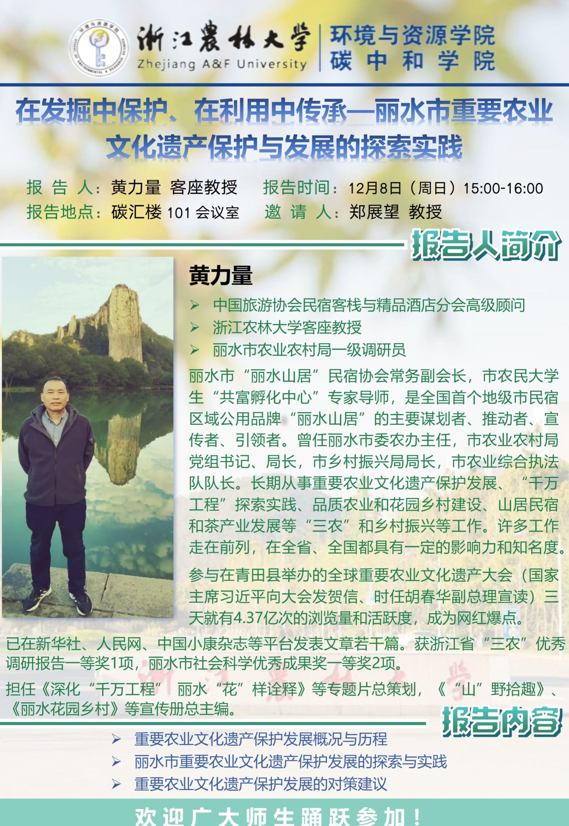 主讲人:黄力量客座教授