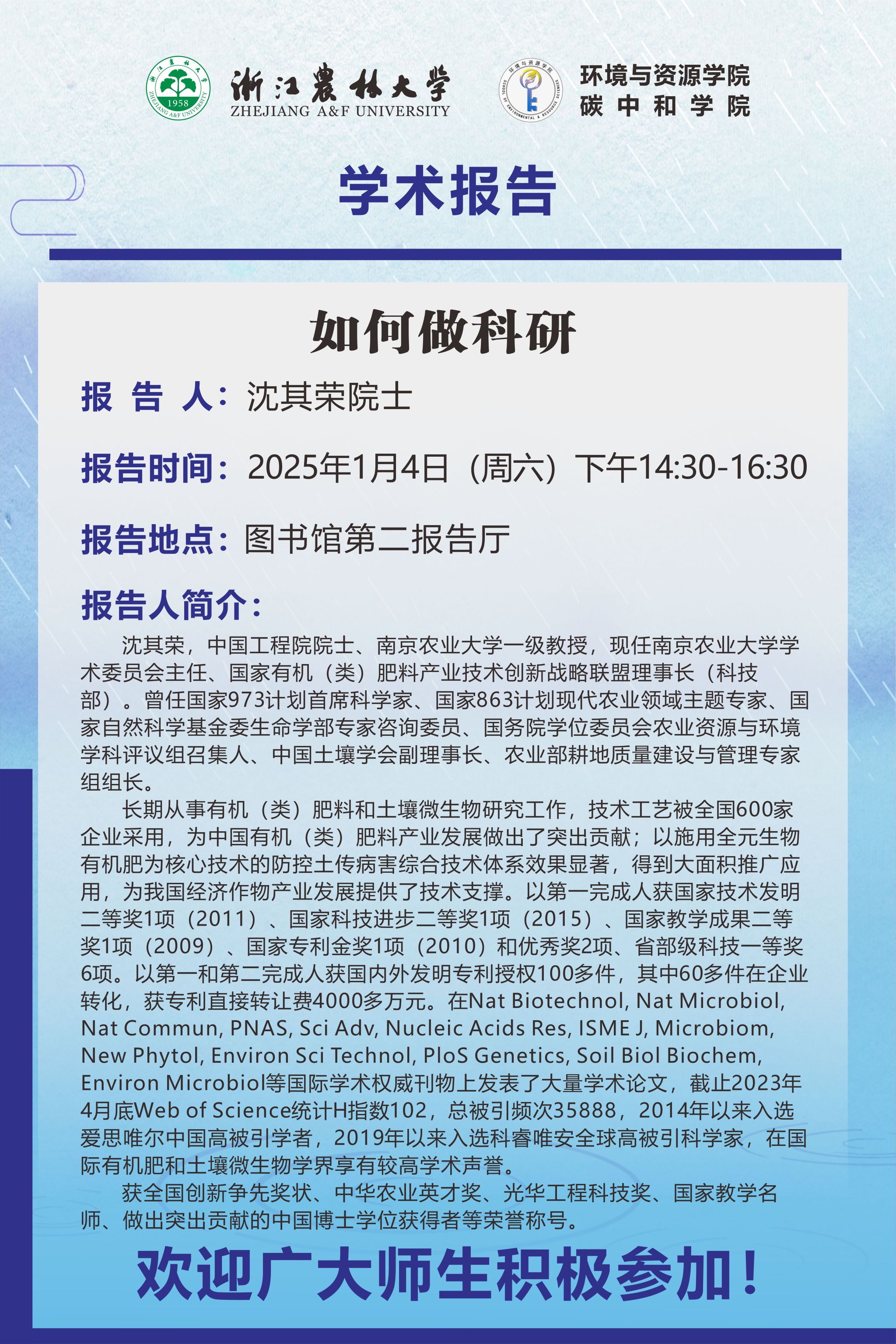 报告人:沈其荣院士