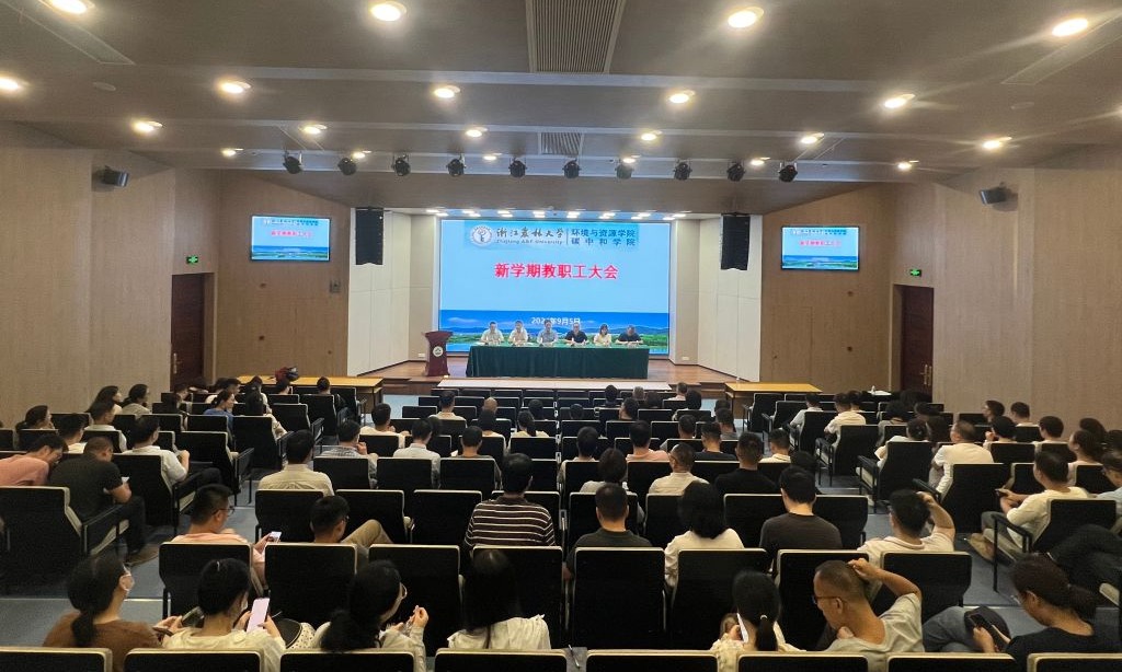 9月6日下午,环资院、碳中和学院在学3国际报告厅举行新学期教职工大会,学院党政领导班子出席会议,会议由学院党委副书记王守先主持,全体教职工参加会议。