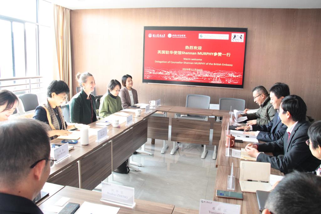 经学院相关负责人邀请,英国驻华大使馆气候变化、能源与环境参赞孟姗兰(Shannan Murphy)、英国驻上海领馆、北京绿研公益发展中心成员一行8人于11月24日访问williamhill官网、碳中和学院,国际交流与合作处副处长陈立杰主持召开座谈会,学院院长冯华军致辞、学院相关负责人和教授代表参加座谈。