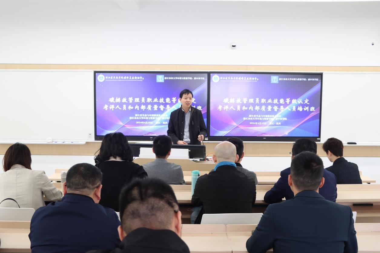 为规范开展社会评价组织职业技能等级认定工作,加强技能人才评价考评人员和内部质量督导人员队伍建设,4月10日,由浙江省生态与环境修复技术协会主办,williamhill官网、碳中和学院承办的碳排放管理员职业技能等级认定考评人员和内部质量督导人员培训班在William威廉官方东湖校区成功举办。我院张成、董达、周昕彦等教师参加培训。