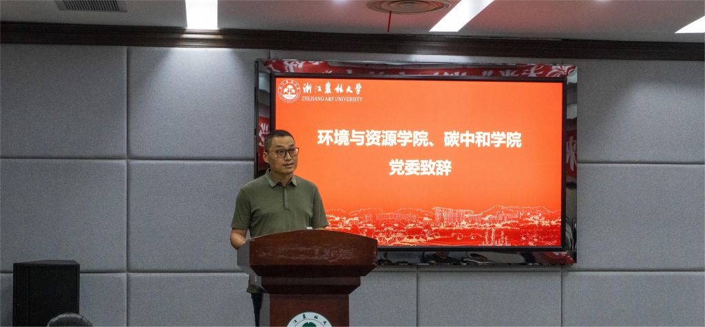 陈胜伟、侯锡铭为2023年学院“低碳科技文化之星”先进个人代表颁发证书,表彰在“挑战杯”、社会实践、低碳志愿、文明示范等科创竞赛和文化活动中,涌现出来的一批国家级、省级先进个人和集体。冯祎中、孙晓民为校园“绿色低碳出行寝室”授牌。本批创建寝室将坚持树立绿色低碳理念,践行绿色低碳行为。创建寝室承诺在校园1公里内步行,3公里以内骑自行车,自觉加入“单车一族”,养成低碳环保、节能减排、体育锻炼的生活好习惯。冯晓燕、李姗姗、王守先为2024年学院暑期社会实践团代表授旗。学院暑期社会实践团的师生们,将围绕助力“双碳”战略、千万工程、生态文明建设、绿色低碳发展等实践主题,开展特色鲜明、形式多样的社会实践活动。开幕式上,学生代表宣读了低碳文明倡议书。