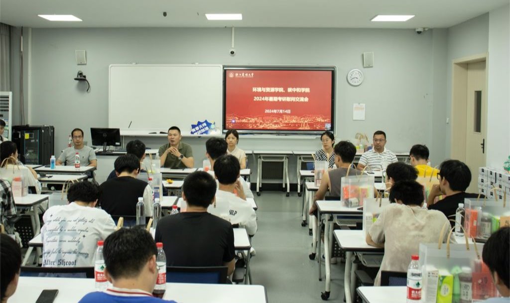 7月14日,环资院、碳中和学院开展2025届毕业生暑期考研慰问交流活动,学院副院长赵科理、党委副书记王守先、各学位点负责人、辅导员及2024届暑期留校考研备考学生参加活动。