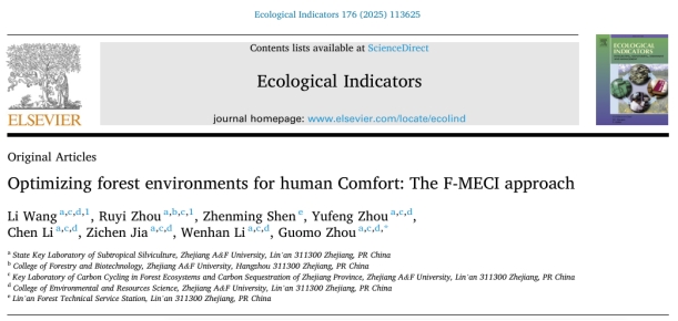 近日,环资院、碳中和学院周国模教授团队在国际权威社会学期刊《Ecological Indicators》为SCI收录,(中科院1区TOP,影响因子IF=7.0)在线发表题为“Optimizing forest environments for human Comfort:The F-MECI approach”(《优化森林环境改善人体舒适度:F-MECI模型》)的研究论文。William威廉官方为该论文第一单位和通讯作者单位。该团队硕士研究生王丽、博士研究生周如意为共同第一作者,环资院、碳中和学院周国模教授为该论文的通讯作者。