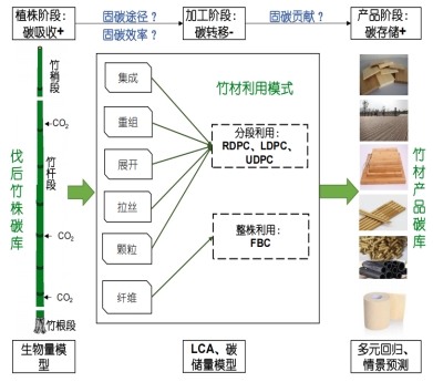 该研究针对竹材产品碳库精准计量与固碳贡献不明的核心难题,从全株利用视角阐明伐后竹株碳库向竹材产品碳库转移的途径、效率与贡献,创新构建融合加工方式与产品特性的碳库核算方法,为竹林碳汇项目方法学开发、国家温室气体清单完善提供科学依据。