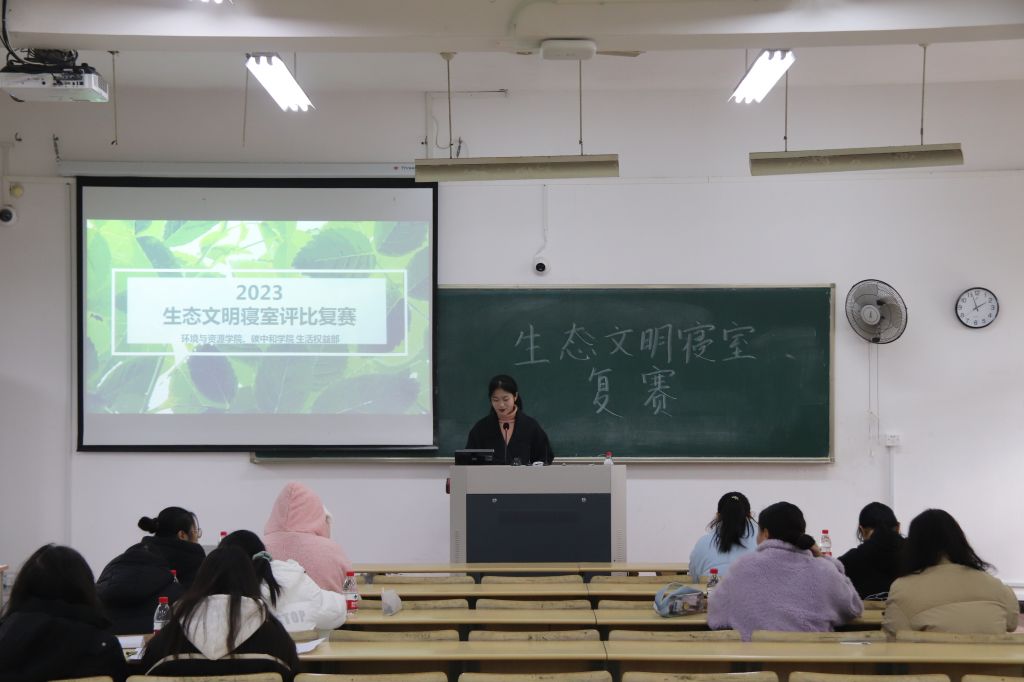 清雅之室,停僮农林。为丰富寝室文化,营造文明室风,12月17日下午,环资院、碳中和学院“寓情于寝,宿说生态——迎65周年校庆”生态文明寝室复赛评比于教4-103顺利举行。