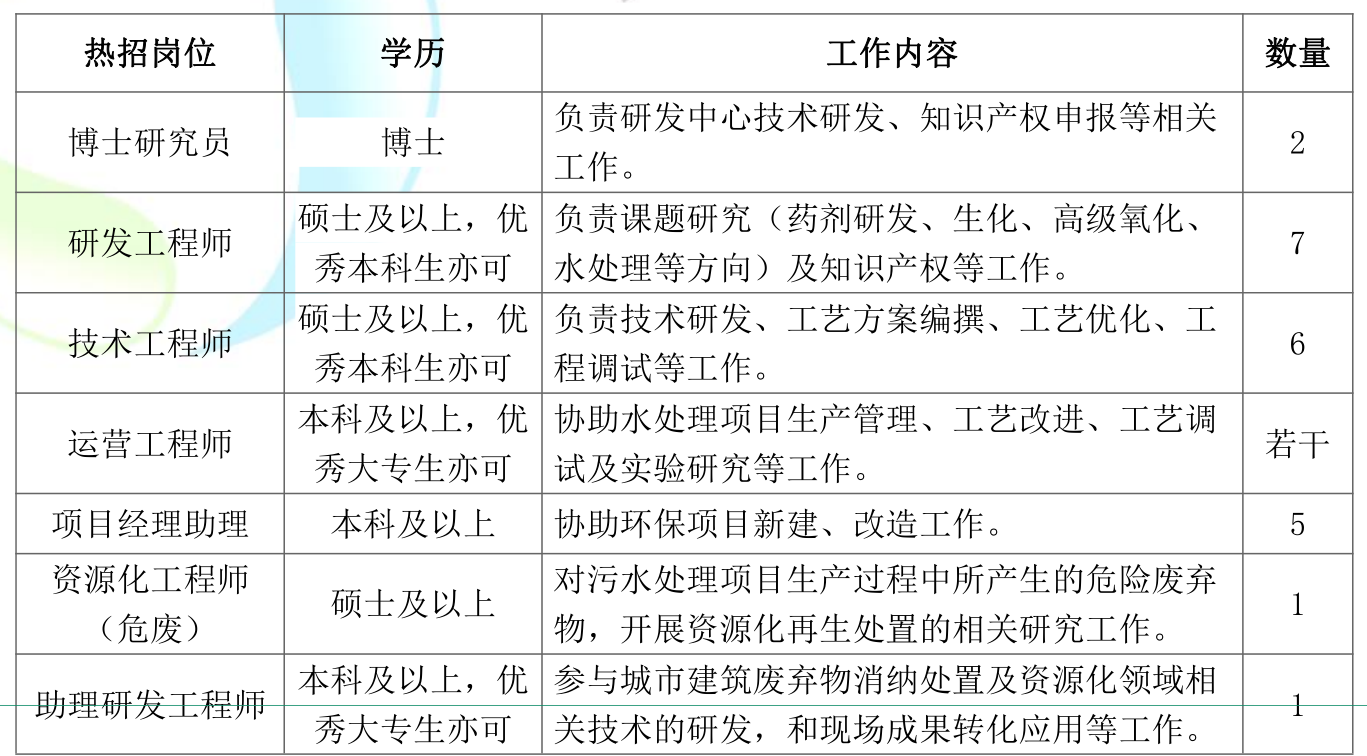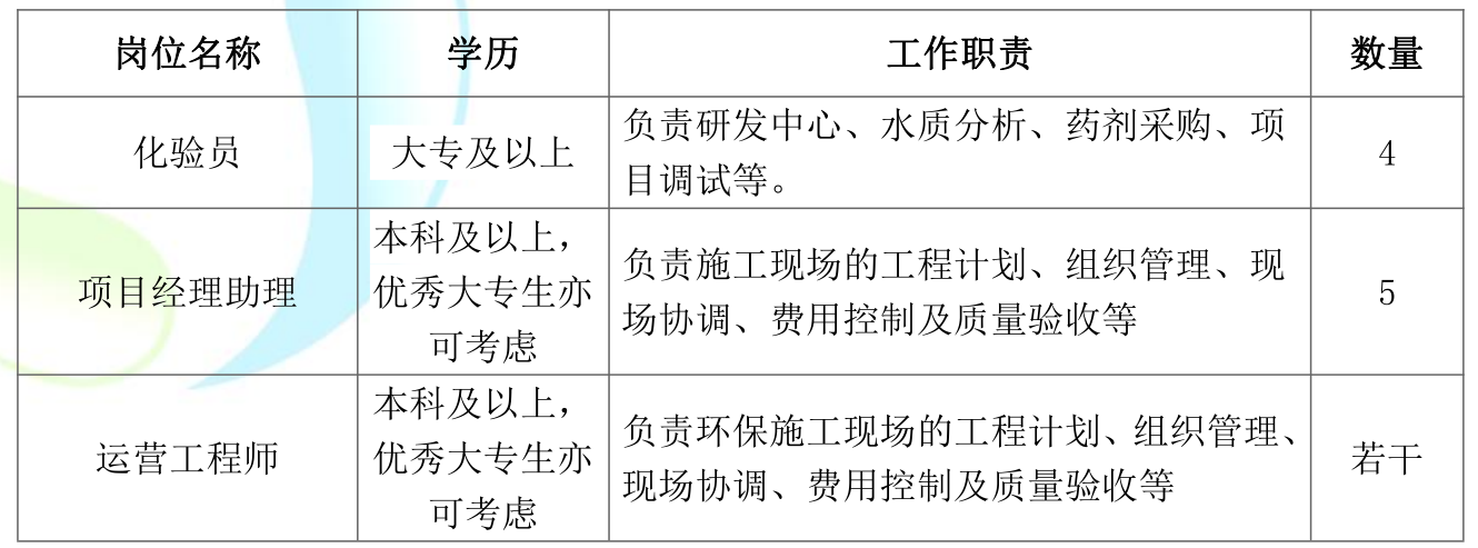 环保行业具有竞争力的薪资,每年享有晋升机会;