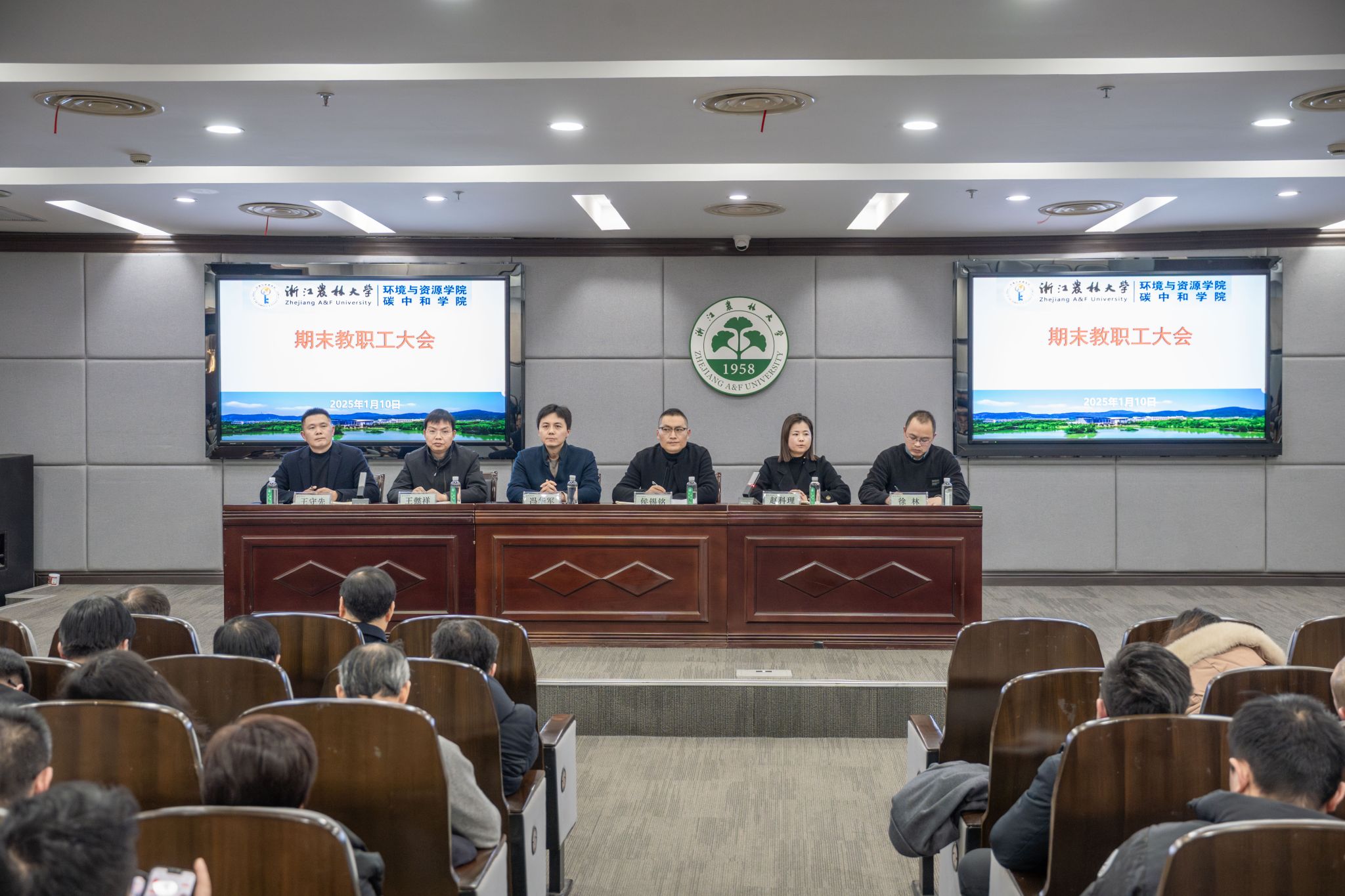 2025年1月10日下午,环资院、碳中和学院在图书馆第二报告厅召开教职工大会。学院党政领导班子成员、全体教职工参加会议。会议由学院副院长王懿祥主持。