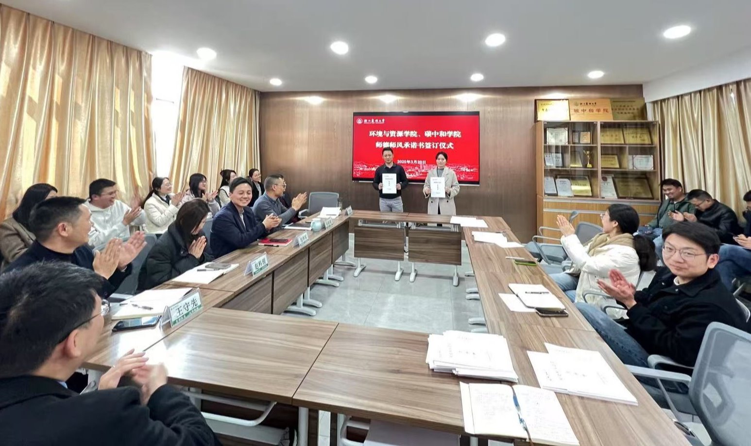 为进一步加强师德师风建设,提升教师队伍职业素养和道德水平,3月20日下午,环资院、碳中和学院召开师德师风建设座谈会,并组织教师签订师德师风承诺书,会议由学院党委书记侯锡铭主持。