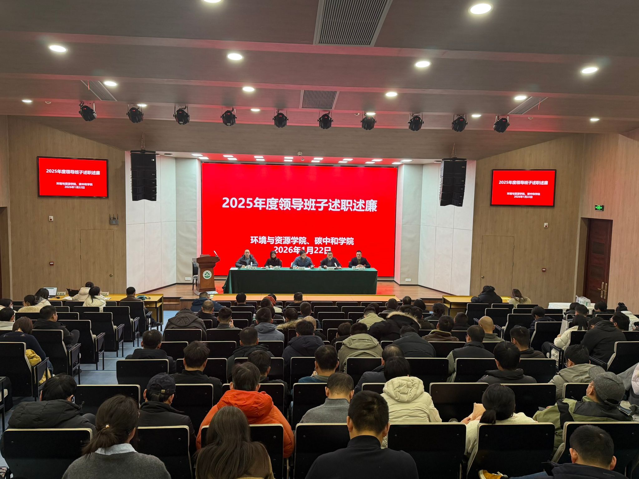 2026年1月22日,环资院、碳中和学院在学三国际厅召开教职工大会。学院党政领导班子成员、全体教职工参加会议。会议由学院党委书记侯锡铭主持。
